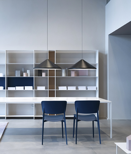 The North pendant lamps collection designed by Arik Levy is composed of traditional shades suspended from a slim carbon fibre rod structure. North uses LED light as a source of illumination providing a uniform light with a local yet flexible character which can be concentrated where required. Vibia offers six models of pendant lamps in different sizes of shade and four finishes to choose from that make it suitable for residential spaces as much as public or commercial use.